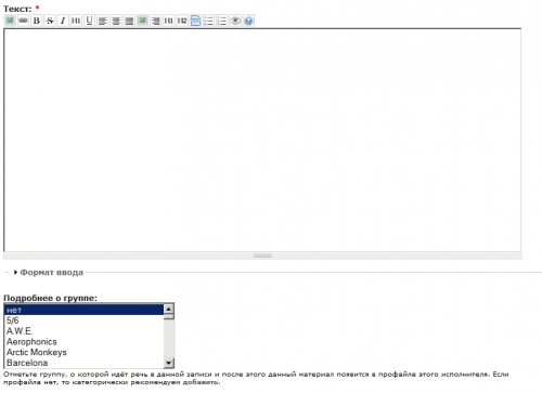 Создавать новый профайл группы могут, как и прежде, все зарегистрированные на сайте пользователи. Редактирование происходит, как в вики, то есть каждый пользователь может редактировать любой профайл (при это записывается история всех редакций). То есть на сайте может быть зарегистрировано три участника группы, которые в равной степени имеют право редактировать профайл или, по аналогии с зарубежной группой — зарегистрировано три поклонника.