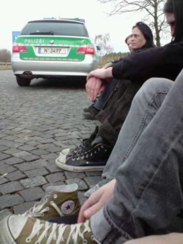 «Это снова мы. Мы покинули Франкфурт (Германия) около полудня сегодня, потому что сначала ждали нового водителя. Новый водитель прибыл, и наше 200-километровое путешествие в Bamberg началось. После двух часов и двадцати минут езды мы были остановлены полицией, сотрудники которой приказали нам выйти из автобуса и сесть на тротуаре. Они обыскали нас одного за другим, сняли с нас носки и туфли на 40 минут, в течение которых проводили обыск в автобусе и перевернули все наши сумки вверх дном. По завершению этого процесса они вышли к нам с камерой и спросили, кому она принадлежит. В ней лежал маленький пакетик с подозрительным белым порошком, который принадлежал нашему новому водителю, но он, конечно, утверждает, что никогда не видел этого пакетика. Чтобы много не рассказывать — мы застряли посреди автобана без водителя, в этой чёрной дыре, в дождливую погоду. Мы стараемся получать удовольствие от просмотра "Кошмара на улице Вязов" на ноутбуке, поедая холодные консервы с красным вином, тёплым, как моча. Ещё один день прошёл впустую. Всё вкуснее с Фредди Крюгером».