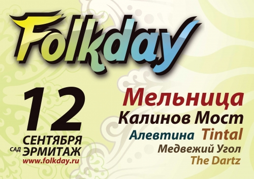 Каждый год любители музыки всех направлений с нетерпением ждут наступления лета. Снег остается только в памяти, деревья зеленеют, птички поют и наступает пора разнообразных open-air-ов! За минувшее лето прошло множество концертов и фестивалей под открытым небом. Похолодание и дождь заставляют музыку снова перебираться в закрытые клубы и концертные залы. Но последний летний концерт еще впереди. 12 сентября в Саду Эрмитаж состоится финальный open-air 2009 года! У одного из самых популярных направлений отечественной музыки теперь есть свой день – Folkday! Хедлайнерами события станут ведущие группы российского фолк-рока – Мельница и Калинов Мост.